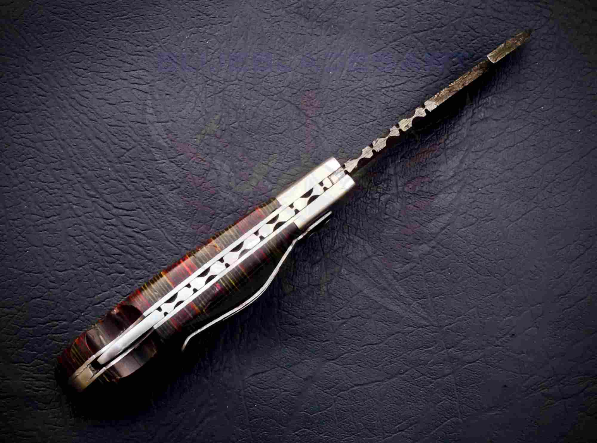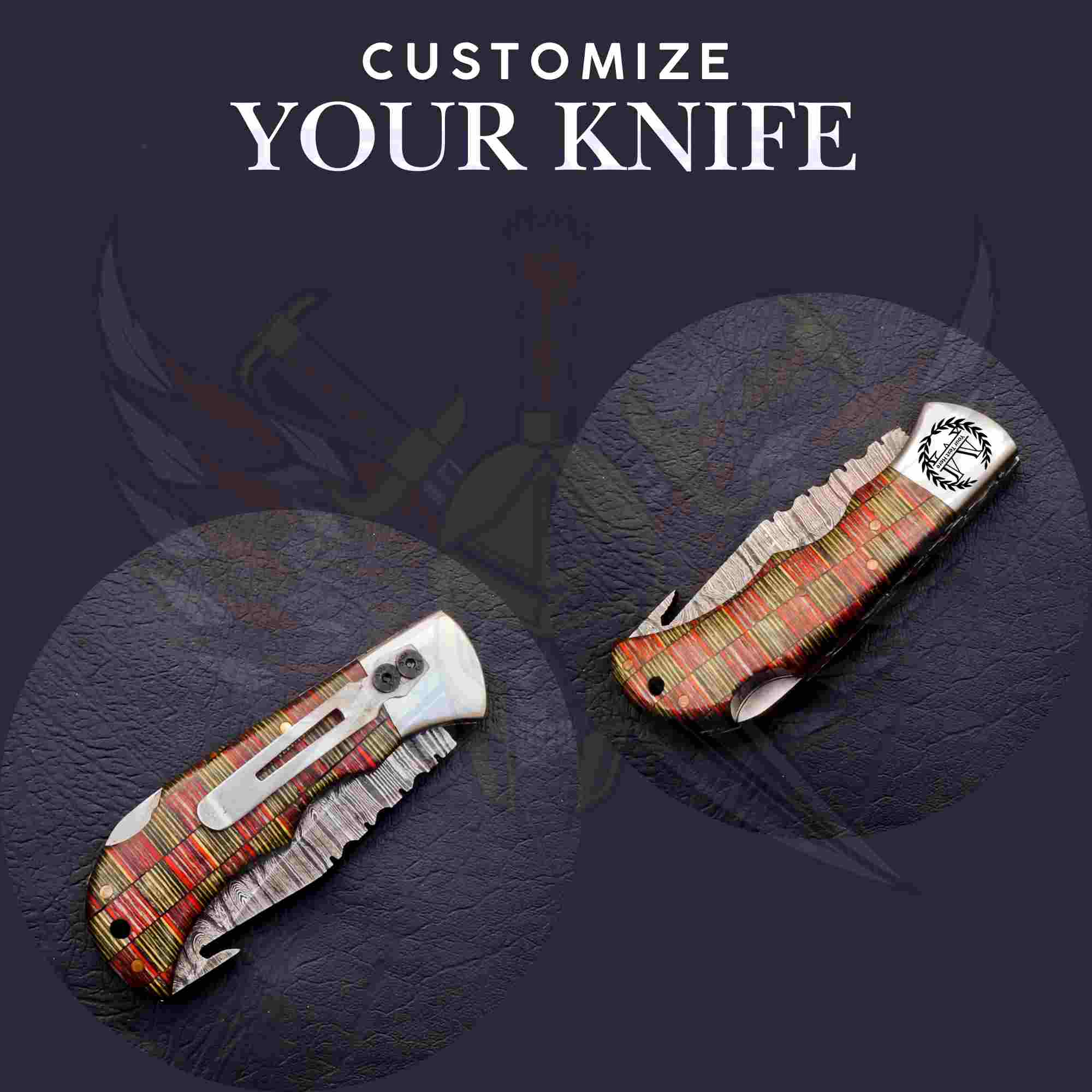 Be the first to review “Crimson Grain Damascus foldable pocket Knife”