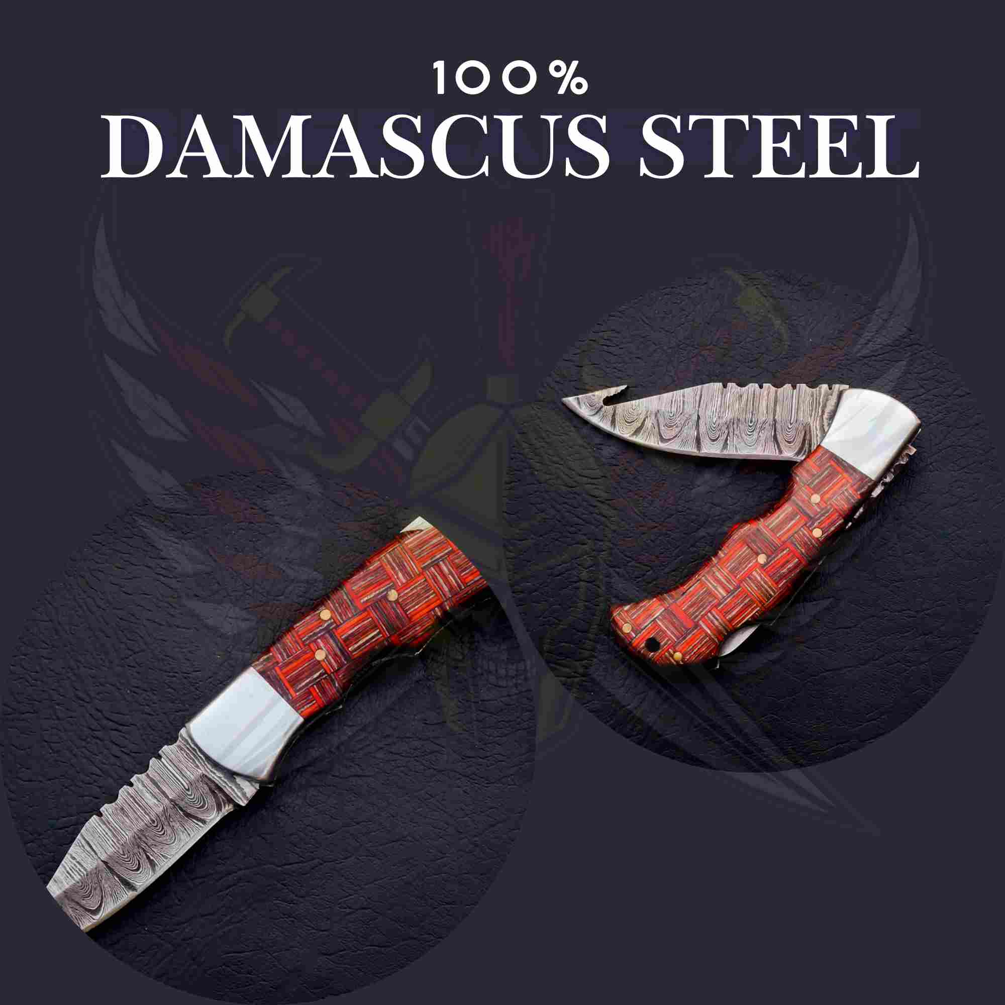 • Redshear Damascus foldable pocket knife