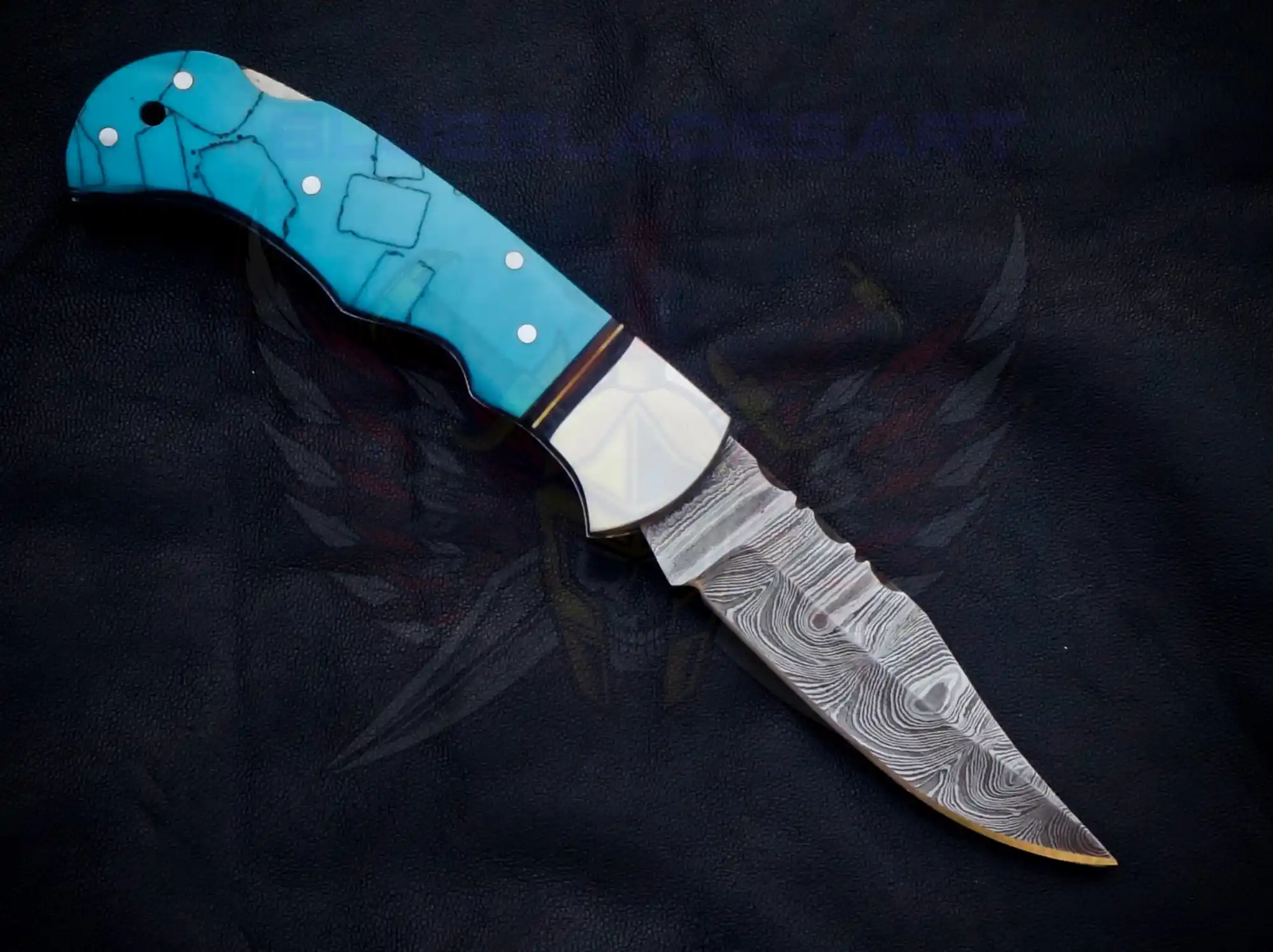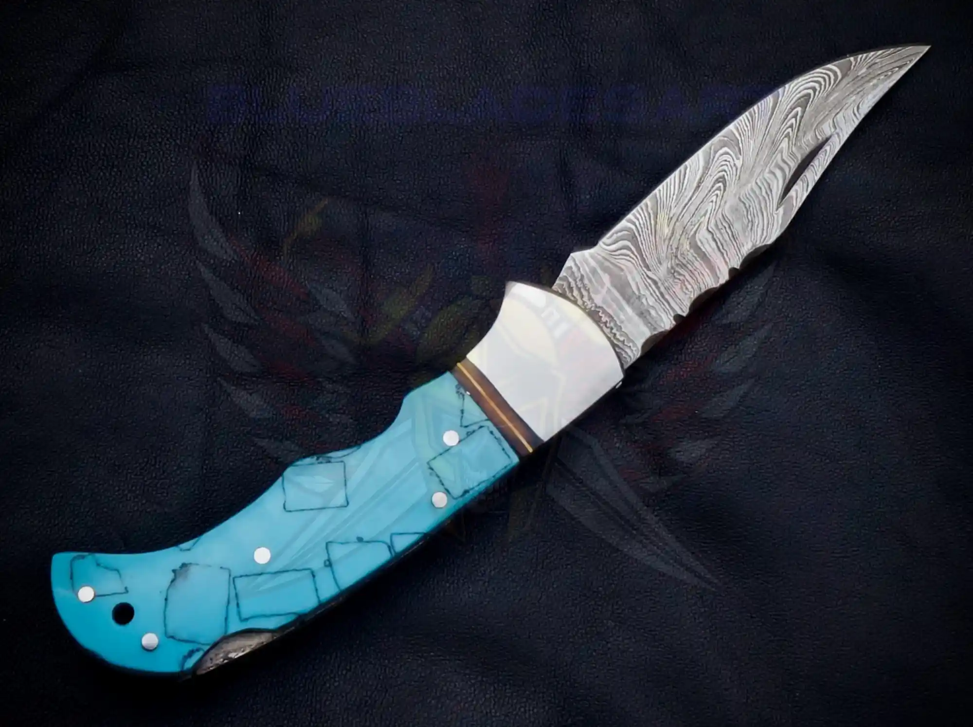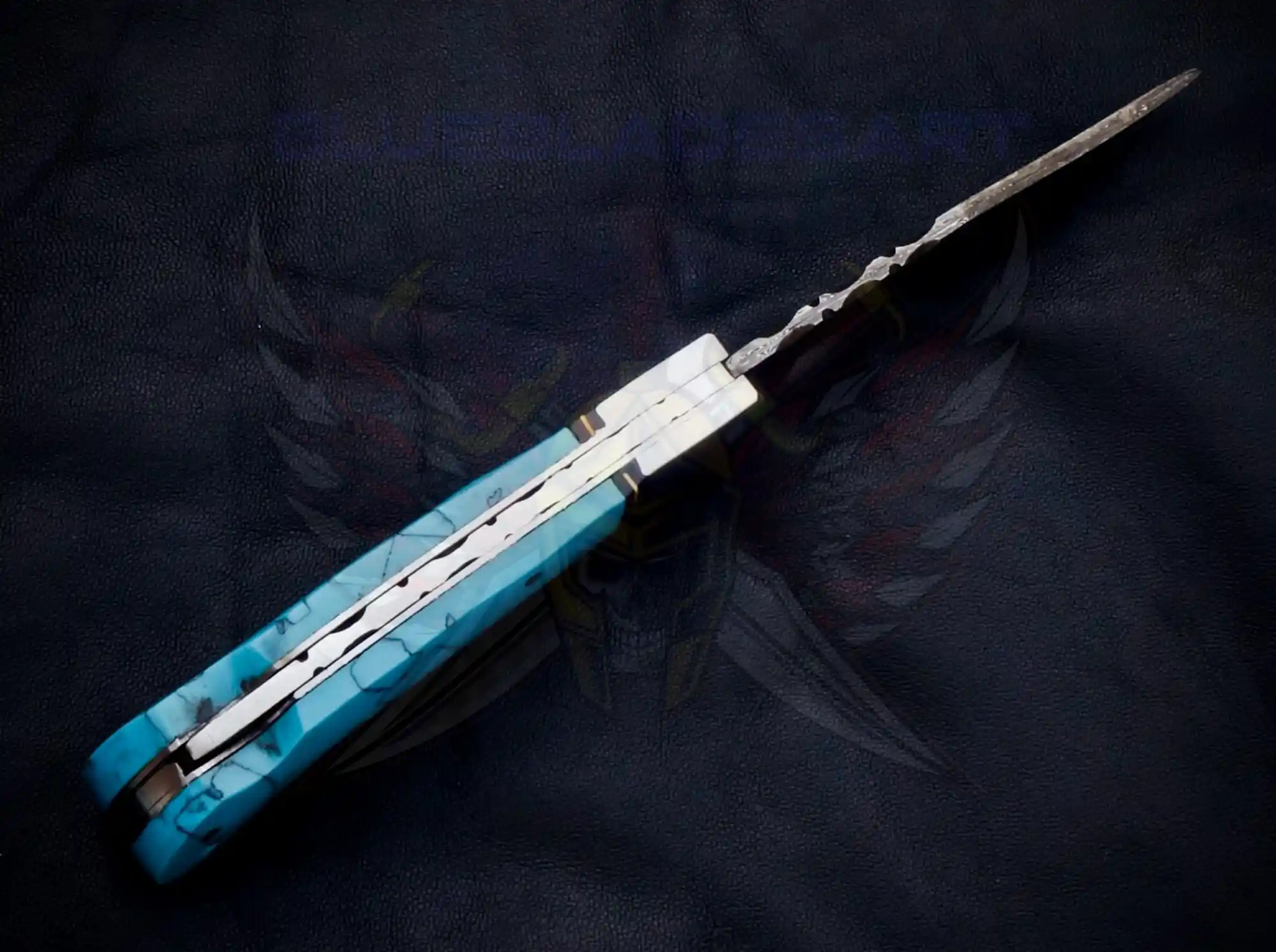 Turquoise Damascus foldable pocket knife