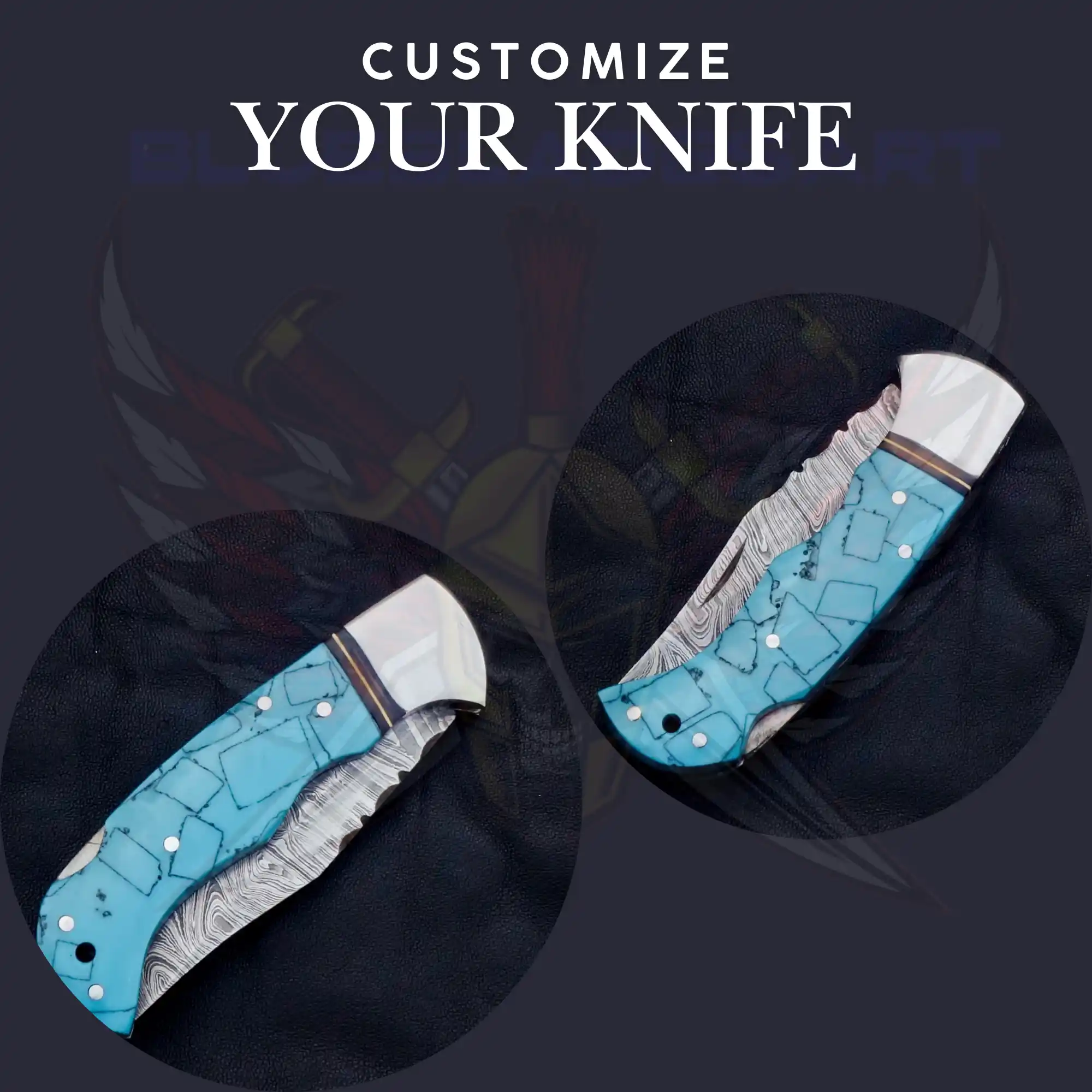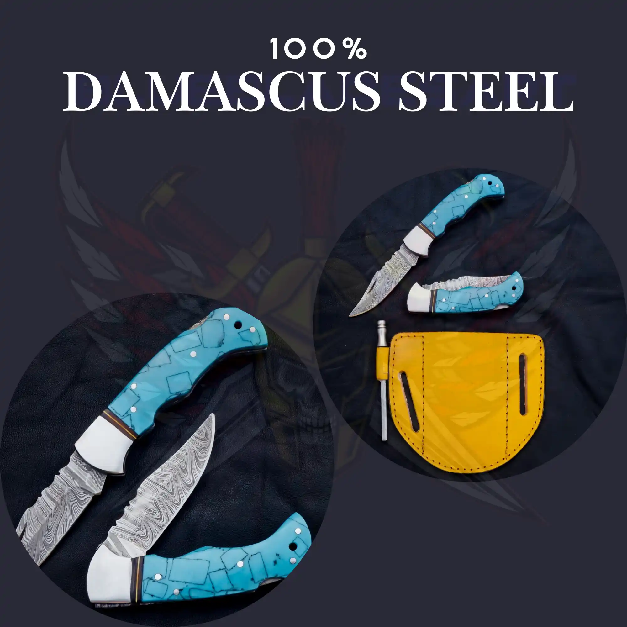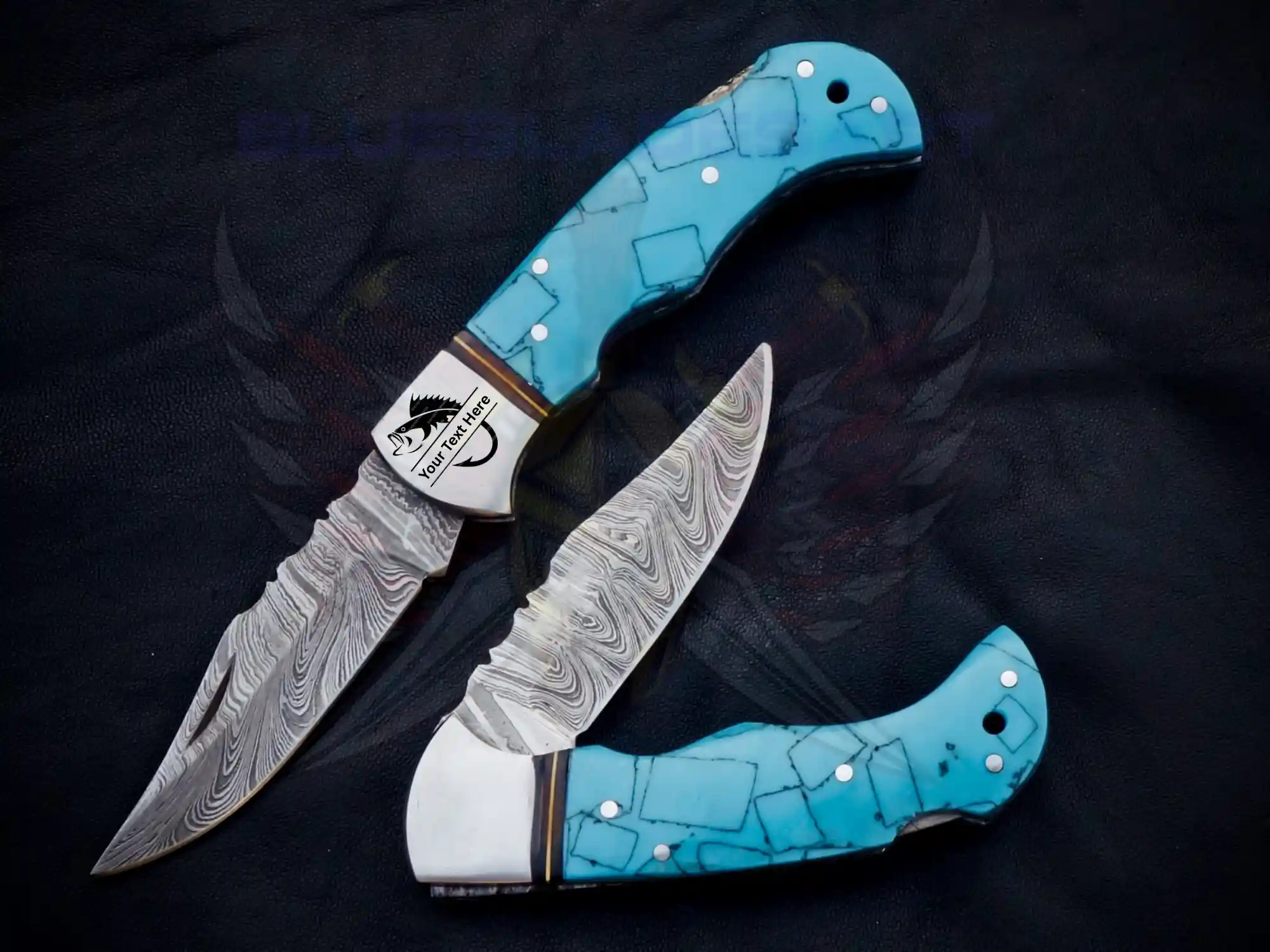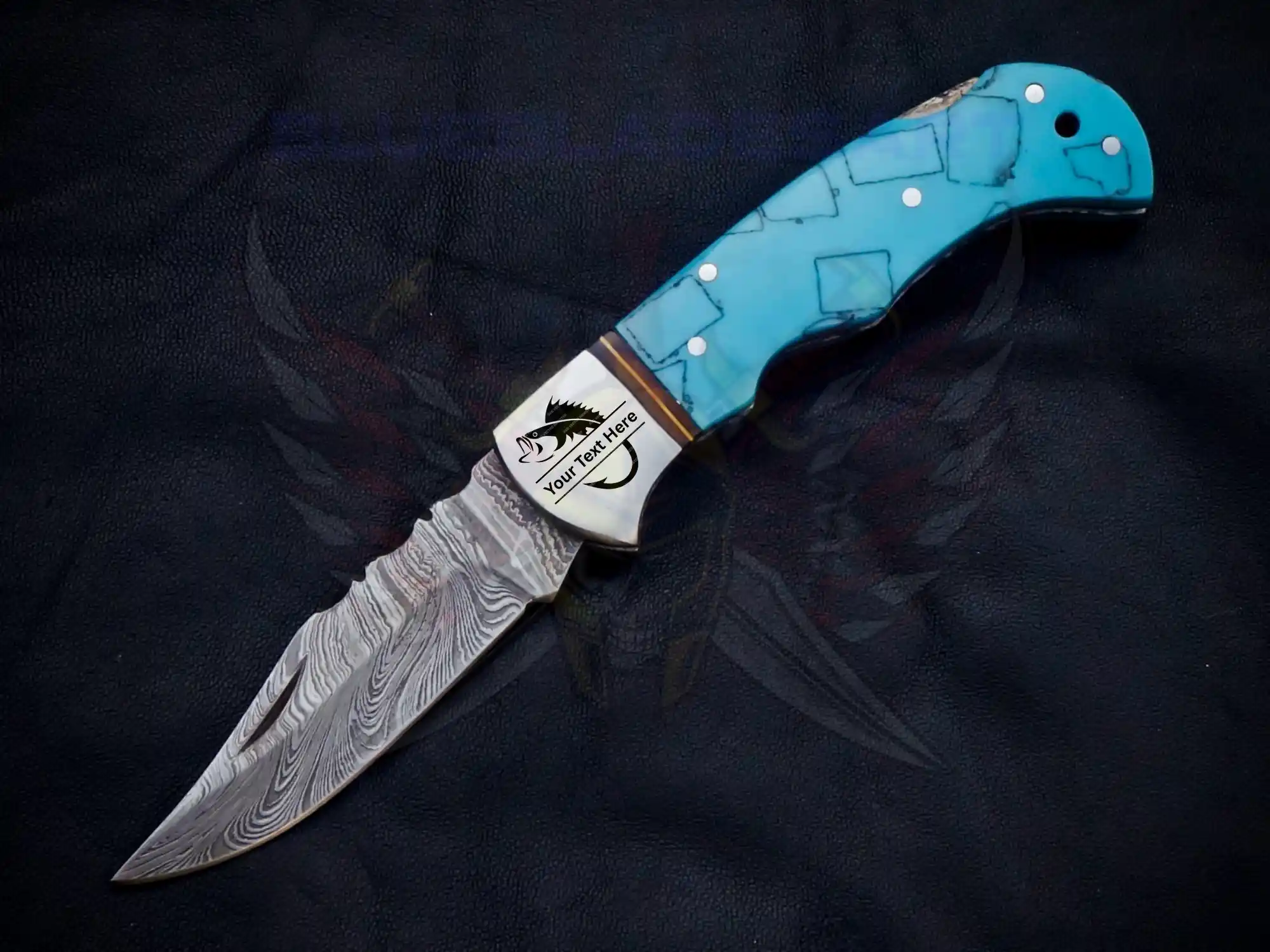 Turquoise Damascus foldable pocket knife